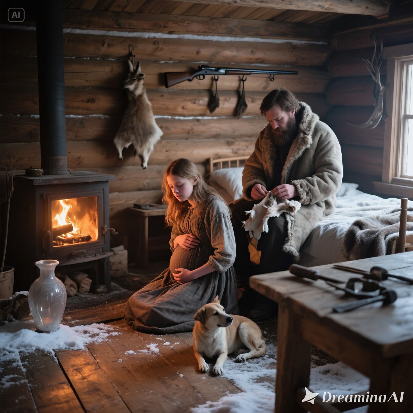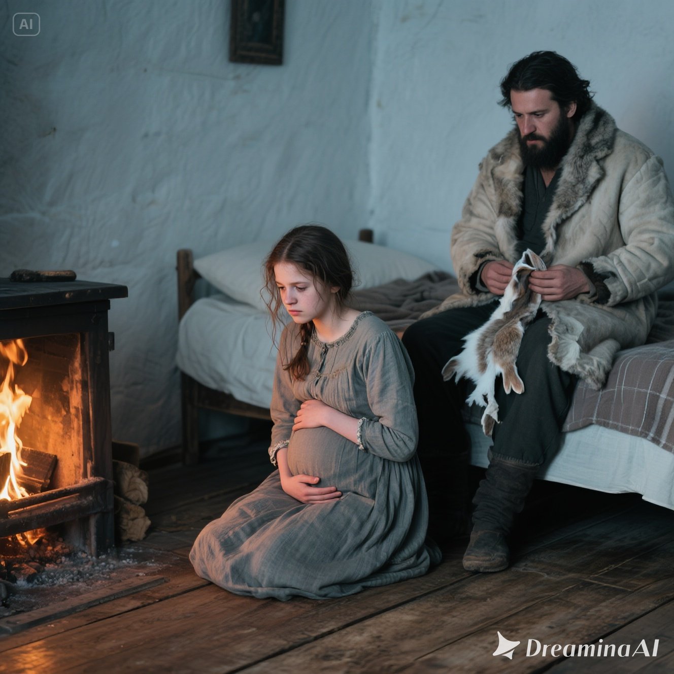 The tiny fluttering inside her that didn’t come from hunger or fear. The life growing in her. the only thing she had left. The next few days passed in silence. Rurk left before dawn, returned after dusk, always with meat or wood or both. She never saw where he went, only heard the sound of axe striking tree, gunfire in the woods, birds scattering.