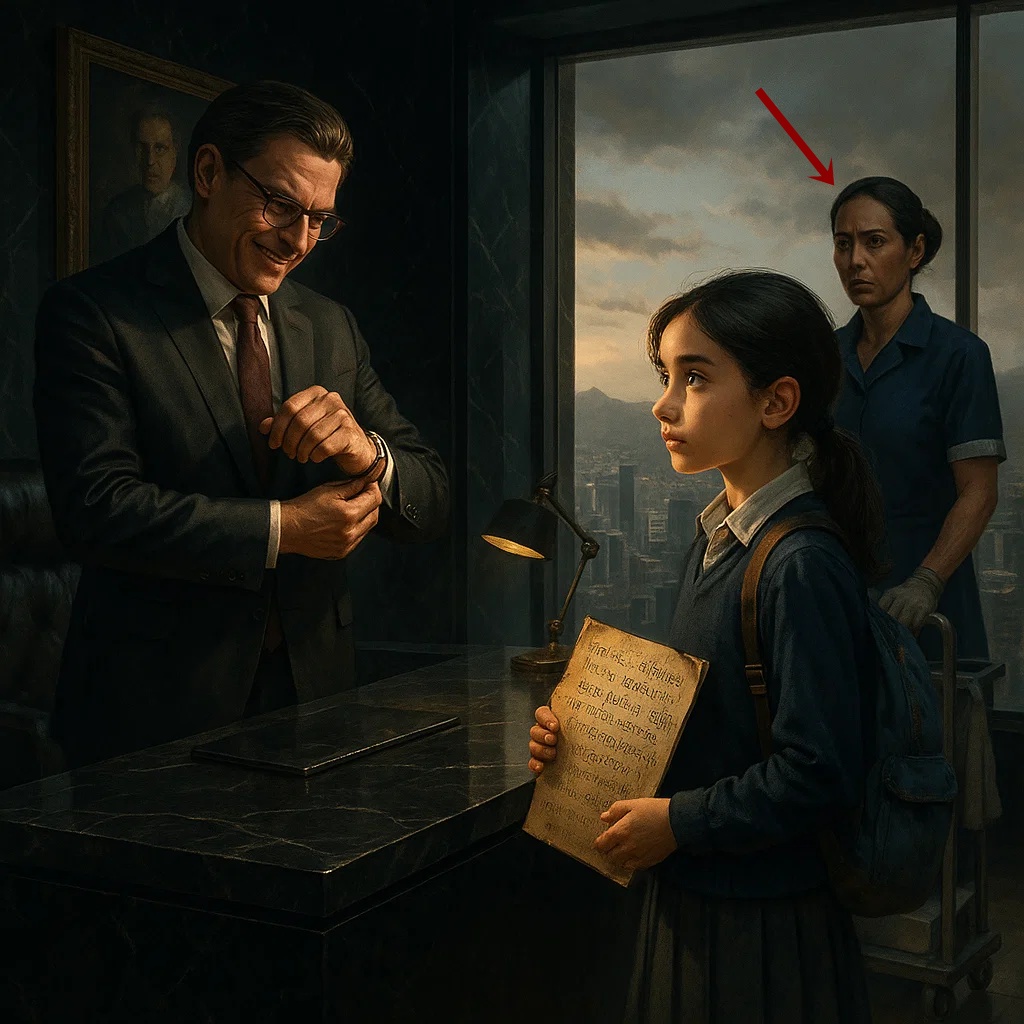 Lucía walked slowly to the desk, her steps echoing on the marble with a determination that surprised everyone in the room. When she stood in front of Ricardo for the first time in her short life, she looked directly into the eyes of an adult trying to intimidate her.