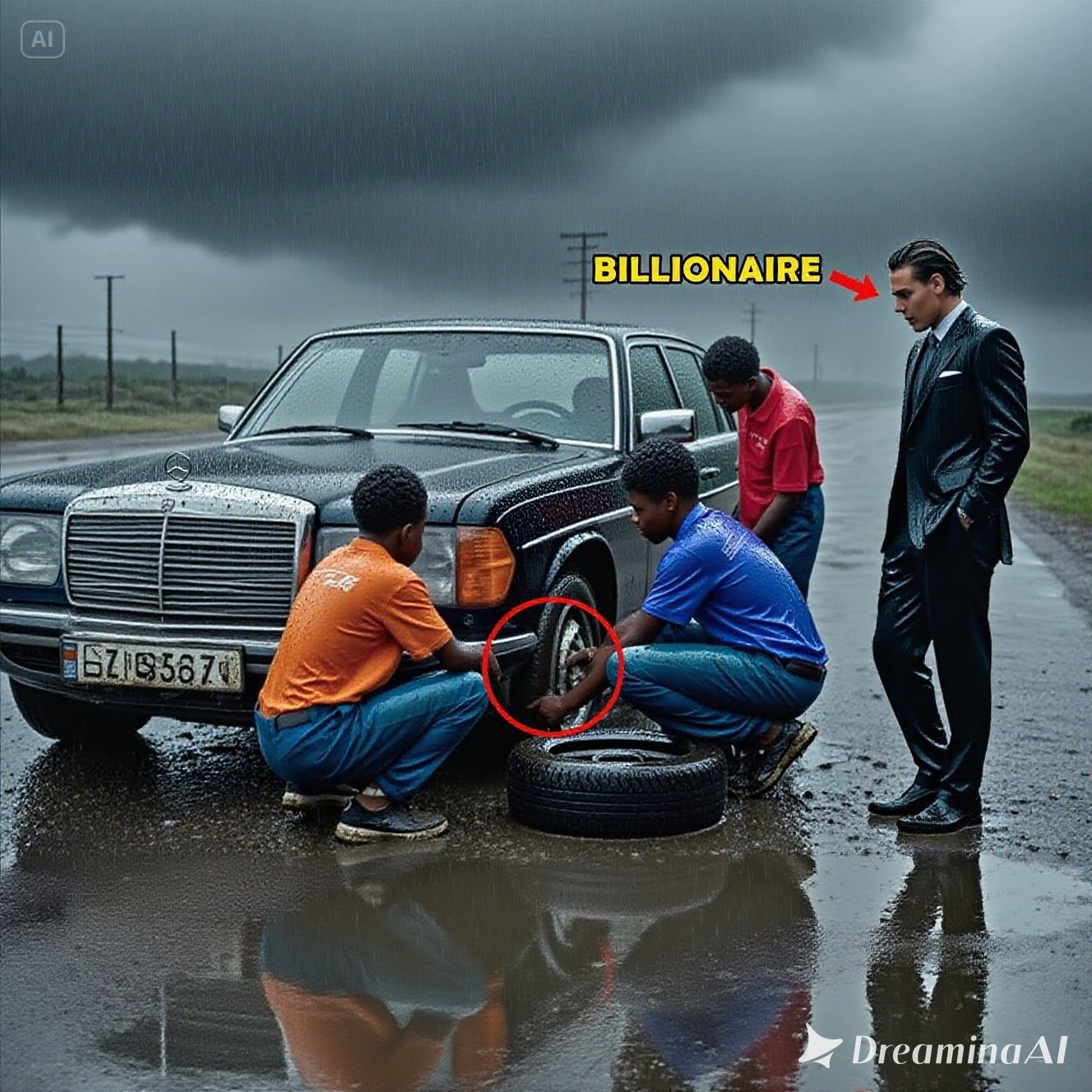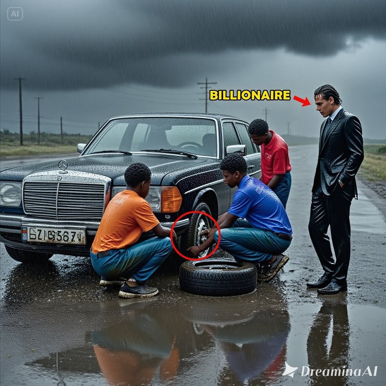 damn it the billionaire cursed loudly his voice echoed through the stormy winds and pouring rain of a turbulent day he was on his way to sign a billion dooll deal when suddenly boom his car veered to the side of the road one of the tires had blown out with no cell phone signal everything seemed hopeless out of nowhere three black teenage boys appeared laughing and chatting need some help sir one of them asked after only 20 minutes everything was taken care of the damaged tire was replaced by three black boys the billionaire took out some